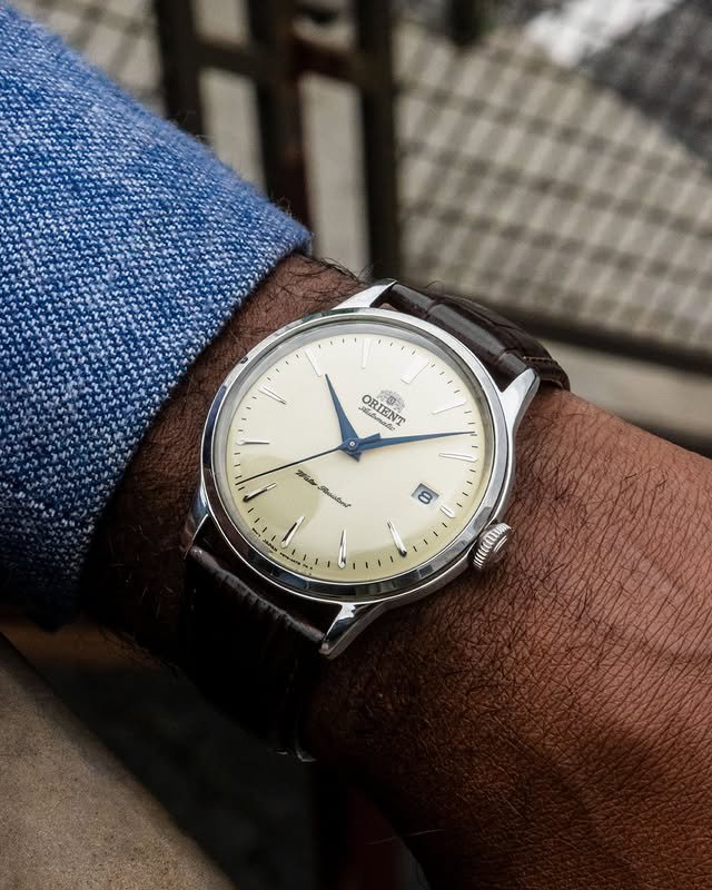 First Orient Bambino with a solar movement (6 month power reserve)⁠