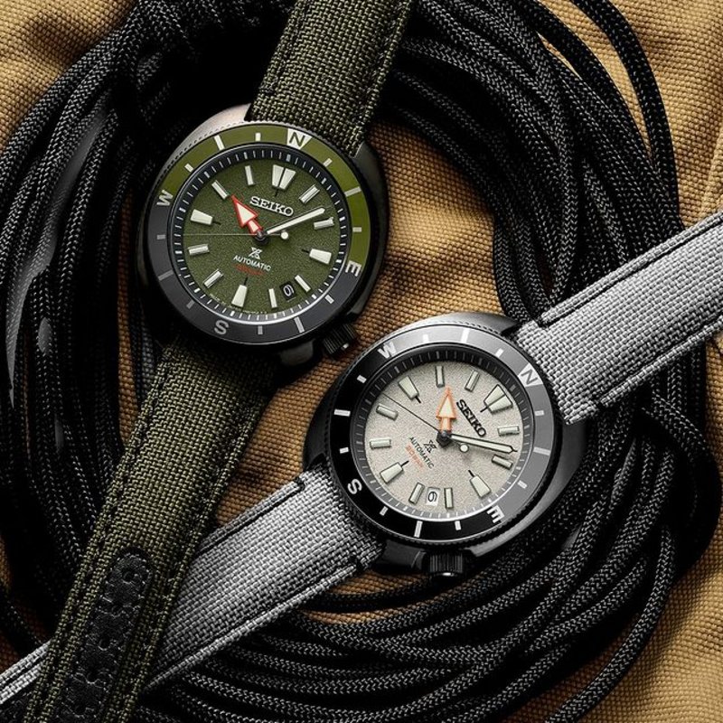 Explore the outdoors with Seiko Prospex. - Introducing two new additions to the adventure-ready series of automatic watches inspired by the great outdoors, now in a sleeker 42.4mm case size. Explicitly designed for exploration on land, these U.S. Special Editions feature a compass bezel, sapphire crystal, and a caseback with a listing of emergency codes. #SRPJ31 #SRPJ33 #SeikoProspex