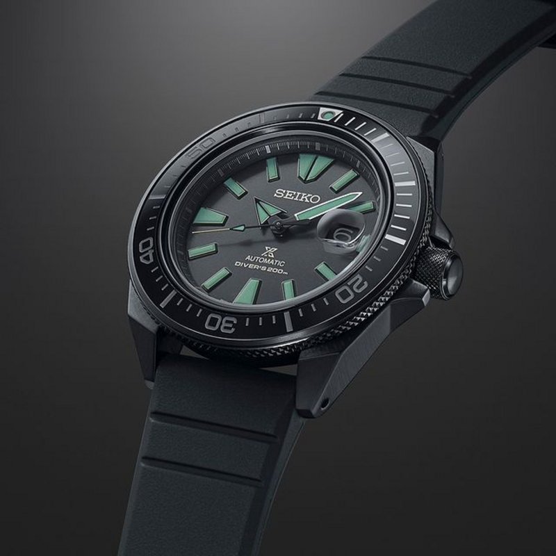 As black as Halloween night At the spookiest time of year, what could be more apt than the Prospex Black series? The Lumibrite on the dial glows in a seasonal vivid green to enhance the effect, whether worn in the depths whilst diving, or as a suitable accompaniment to trick or treating, this watch is most definitely a treat to behold. SKU featured: SRPH97