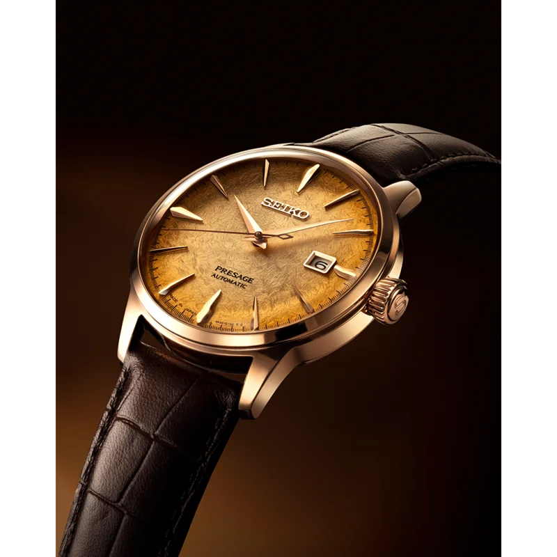 Seiko Presage Australasian Cocktail Time LE Irori Moments - SRPK50JCase: Steel with PVDDiameter: 40.5mmHeight: 11.8mmL2L: 47mmWaterproof: 50mMovement: Seiko 4R35Power reserve: 41 hoursExtra: Limited to 1000 piecesPrice: 890 euroshttps://seikoboutique.com.au/product/SRPK50J