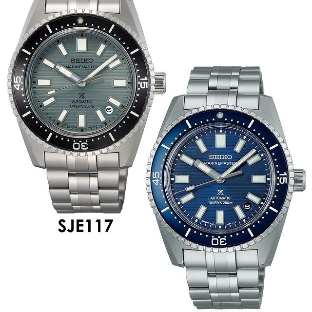 Seiko Marinemaster SJE117 & SJE119Diameter: 39.5mmHeight: 12.3mmL2L: 47.2mmWaterproof: 200mMovement: Calibre 6L37 SlimlinePower reserve: 45 hoursPrice: 3400 Euro