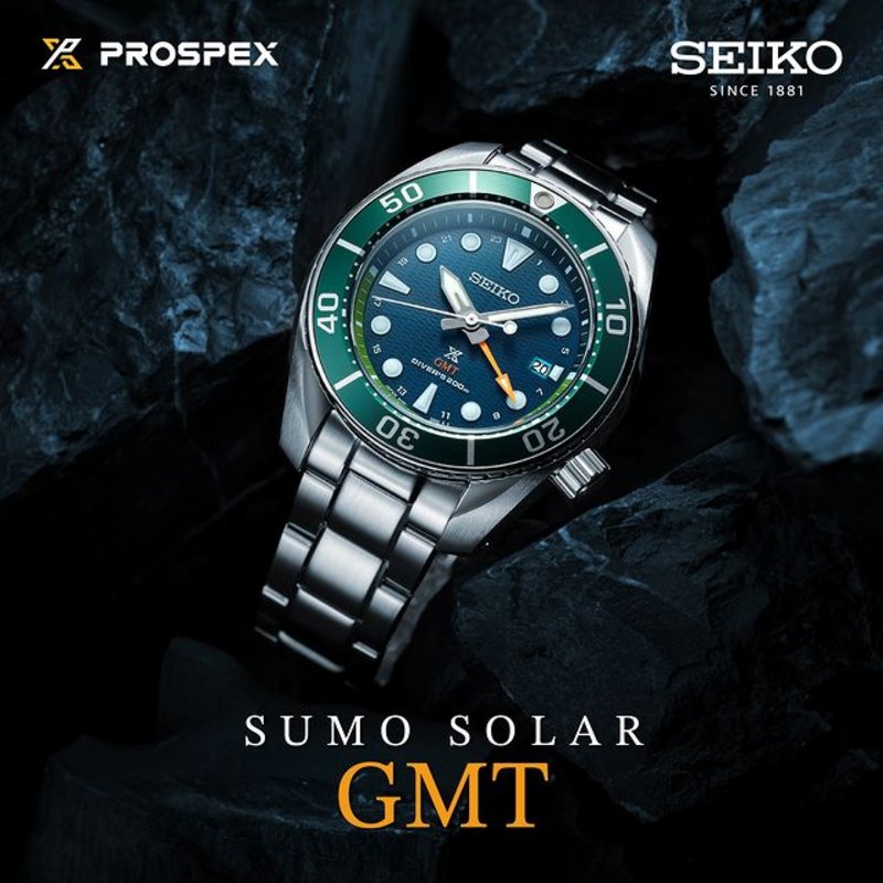 SUMO Solar GMT (New caliber 5K65), a popular collection of the best fighters of the land of the rising sun. Comes with full functions, not a fake, including a sea green dial surface that is a Solar system that stores clean energy like solar energy. to drive the operation of the clock It can reserve up to 9 months of power (if fully charged). One more special feature with an eye-catching orange GMT hand. that can read the time in 2 time zones, ending with a new caliber 5K65, diving to a depth of 200 meters