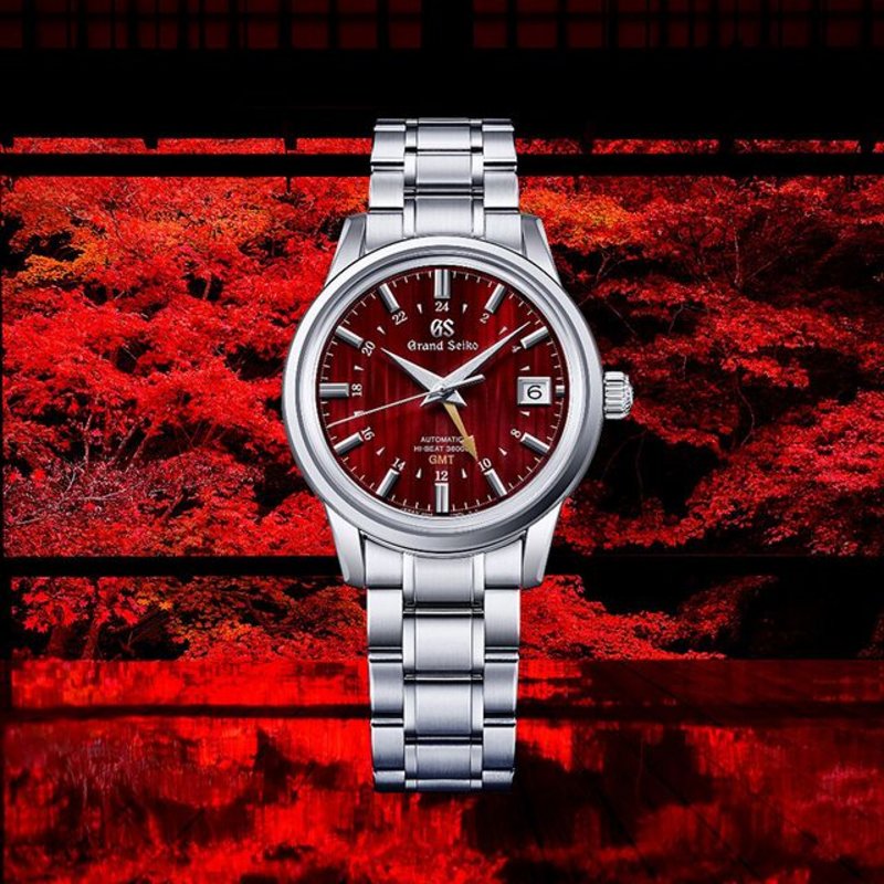 SBGJ273 】 A mechanical GMT showcasing a spectacular dial that depicts the color of autumn leaves reflected in Japanese traditional lacquered flooring