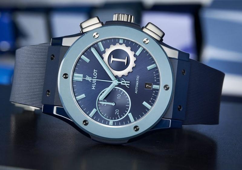 "The conquest of the infinite Sky, Earth and Sea... the ultimate adventurer's dream is brought to life in Lapo Elkann's workshop. Perfectly interpreting Garage Italia's codes to make them our own is a principle that underpins all of our developments, and none more so than this one. The bezel in sky blue ceramic is an exclusive marker of this approach" said Ricardo Guadalupe, CEO of Hublot.