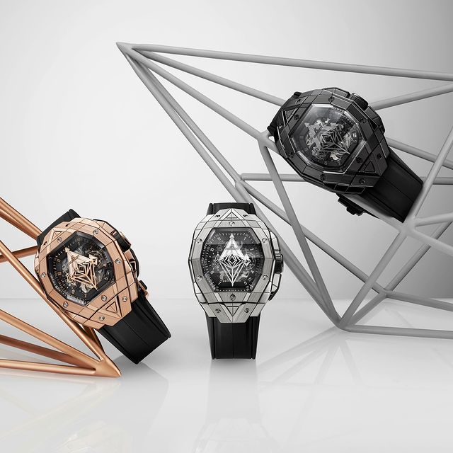 Introducing the new #SpiritOfBigBang Sang Bleu - #Hublot's third collaboration with celebrated typographer, tattooist, artist, and founder of Sang Bleu, @maximeplesciabuchi . Maxime's unique vision injects new spirit into the Spirit of Big Bang collection with a stunning, faceted, three-dimensional watch design. Limited editions available in titanium, All Black ceramic, and King Gold with diamond options make this a must-have for watch collectors
