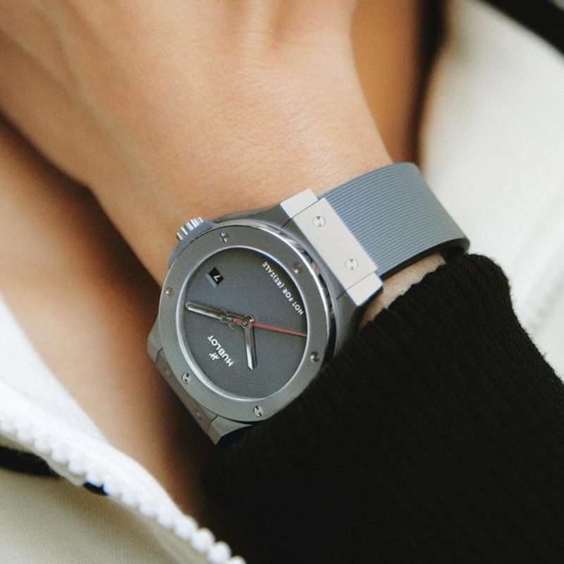 In 2012, Hublot had the clever idea of offering a loaner watch to its customers who were sending in their watches for service. Called the "Atelier Watch," the plastic, quartz-powered watch recreated the Classic Fusion in plastic composite and famously had the words "Not for Sale" stamped on the dial. Taking inspiration from this watch, Hodinkee releases the Classic Fusion Titanium Limited Edition. Constructed out of lightweight grade 5 titanium, the 38mm watch features a grey dial and a grey lined rubber strap to give it a monochromatic look. Powering the watch is a HUB 1110 automatic, which has a power reserve of 42 hours.
