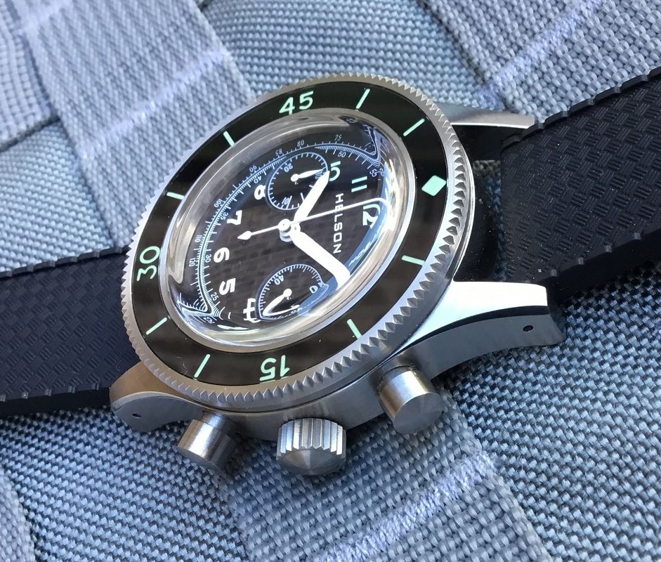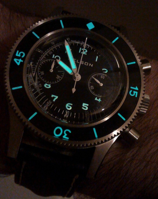 Bezel: unidirectional rotatable, 120 clicks with blue Swiss H3-Tritium-tube