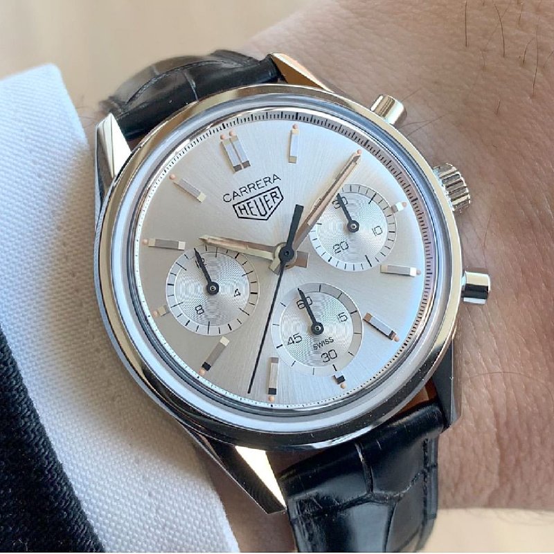 The newest Tag Heuer Carrera watch celebrates the 160-year anniversary of the company’s founding and is inspired by the original Carrera monochrome silver-dial watch of the early 1960s, known as the “2447S.”