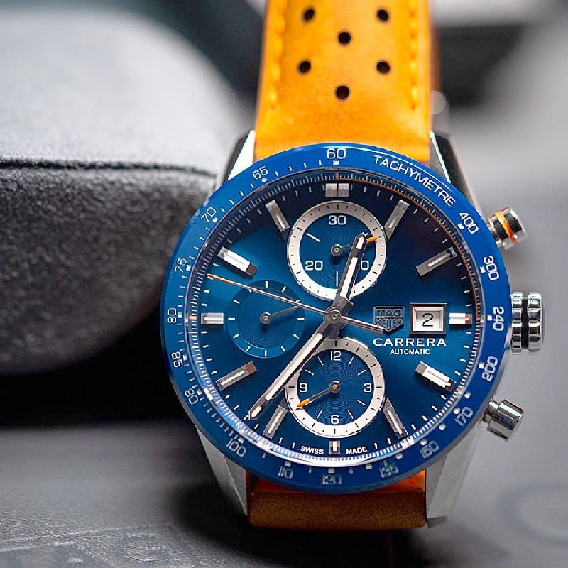 The watch comes with a black alligator strap and special packaging. This model is limited to 1,860 pieces, which is the year Heuer was founded.
