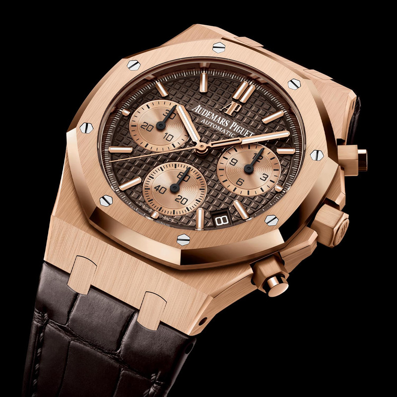 Dial: Openworked slate grey dial, pink gold applied hour-markers and Royal Oak hands with luminescent coating